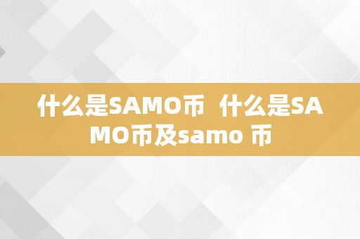 什么是SAMO币 什么是SAMO币及samo 币