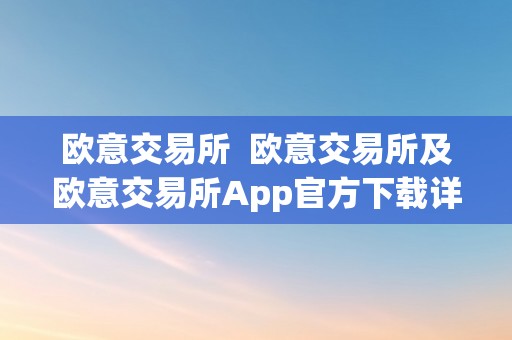 欧意交易所 欧意交易所及欧意交易所App官方下载详解