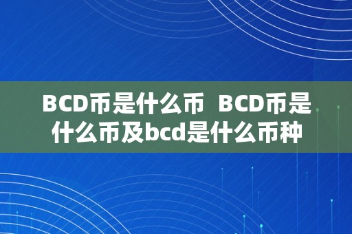 BCD币是什么币 BCD币是什么币及bcd是什么币种