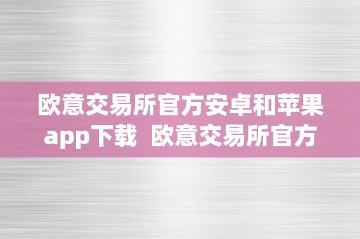 欧意交易所官方安卓和苹果app下载 欧意交易所官方安卓和苹果App下载:功能、界面及使用体验对比