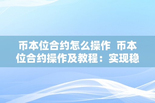 币本位合约怎么操作 币本位合约操作及教程:实现稳定收益的利器