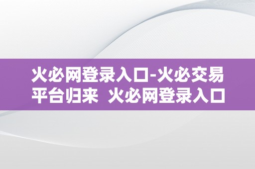 火必网登录入口-火必交易平台归来 火必网登录入口-火必交易平台归来及火并网官方网站