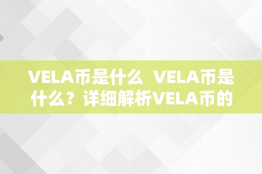 VELA币是什么 VELA币是什么?详细解析VELA币的定义、特点及用途