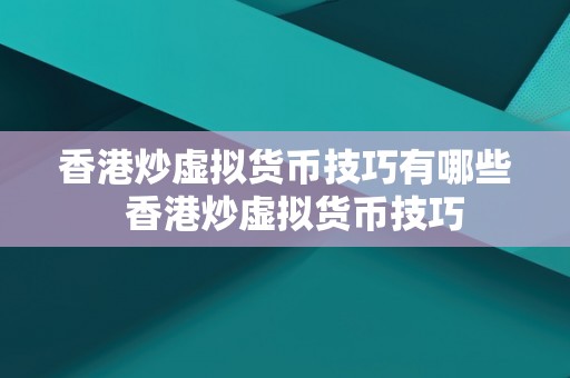 香港炒虚拟货币技巧有哪些 香港炒虚拟货币技巧