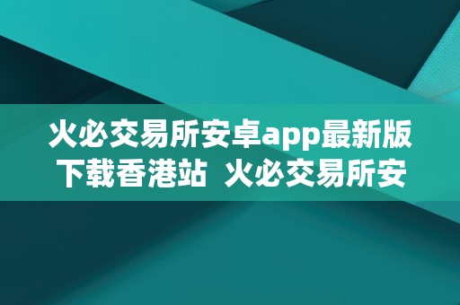 在数字货币交易市场中,火必交易所一直备受关注。作为一个知名的数字货币交易平台,火必交易所在全球范围内拥有大量的用户。为了更好地服务香港地区的用户,火必交易所推出了安卓app最新版,并在香港站上线。