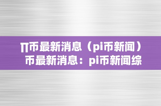∏币最新消息(pi币新闻) 币最新消息:pi币新闻综述