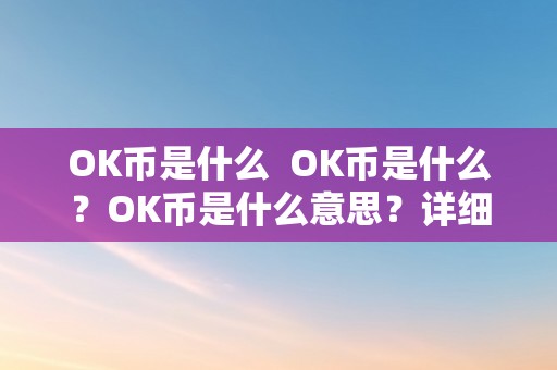 OK币是什么 OK币是什么?OK币是什么意思?详细解读OK币的定义、功能和用途
