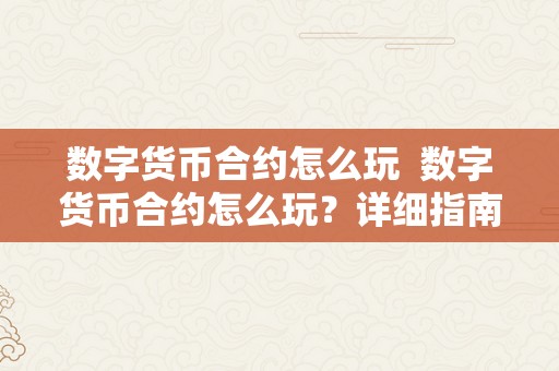 数字货币合约怎么玩 数字货币合约怎么玩?详细指南和操作步骤