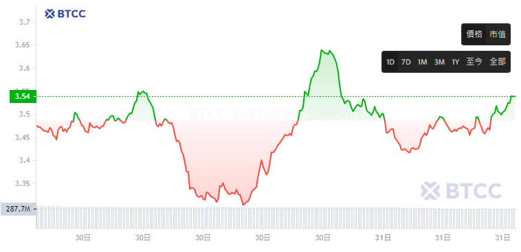 截止2024 年12 月31 日撰写本文时,VIRTUAL 币的交易价格为3.46 美元,在过去一个月上涨了106%。该加密货币当前市值为3,462,192,998.35 美元,在加密货币中排名第40。