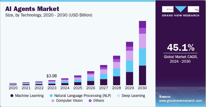 Grand View Research 预测,从2024 年到2030 年,全球人工智慧代理市场规模预计将以45.1% 的复合年增长率成长。此外,云端运算的日益普及也使得不同企业更容易创建人工智慧代理。