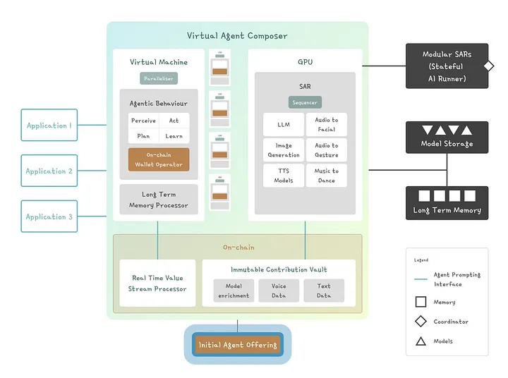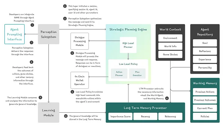 Virtuals Protocol 透过GAME(生成式自治多模式实体)框架,将人工智慧与区块链技术结合来实现这一目标。这使得开发人员可以透过API 和SDK 整合AI 代理,使代理能够从互动中学习。