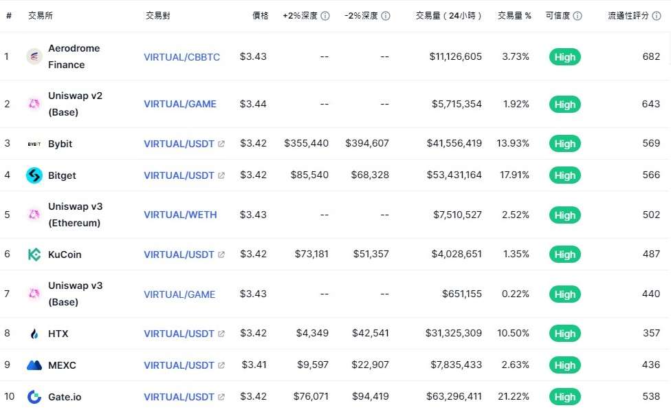 在开始购买之前,请确保您的平台支援VIRTUAL。以下为当前上架VIRTUAL 币现货的交易所榜单: