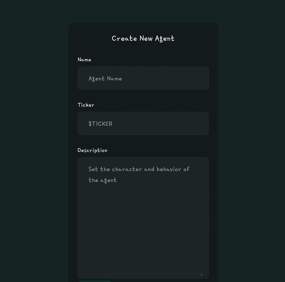 使用者需要填写Agent 建立表单,包括必填资讯(头像影像、名称、代币符号、描述)和其他可选资讯。