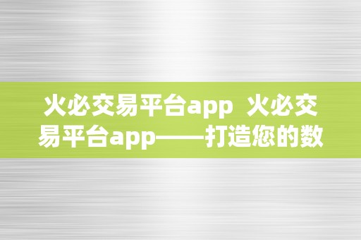 火必交易平台app 火必交易平台app——打造您的数字货币交易新体验