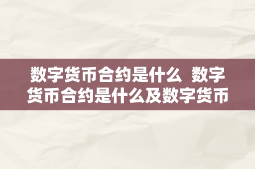 数字货币合约是什么 数字货币合约是什么及数字货币合约是什么意思