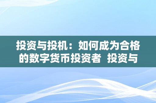 数字货币市场一直以来都备受关注,吸引了大批投资者的目光。在这个充满机遇和风险的领域中,投资者需要具备一定的知识和技能才能做出明智的投资决策。本文将探讨如何成为合格的数字货币投资者,从投资与投机的角度出发,为读者提供一些实用的建议和指导。