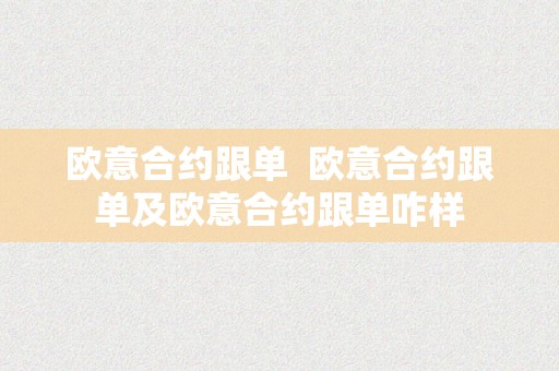 欧意合约跟单 欧意合约跟单及欧意合约跟单咋样