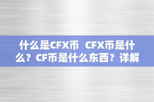 什么是CFX币 CFX币是什么?CF币是什么东西?详解两种虚拟货币的区别和用途