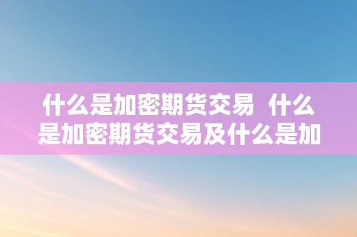 什么是加密期货交易 什么是加密期货交易及什么是加密期货交易账户