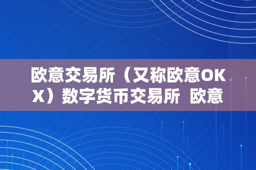 欧意交易所(又称欧意OKX)数字货币交易所 欧意OKX数字货币交易所正规吗?欧意交易所(欧意OKX)的安全性与合规性详细解析
