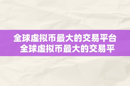 全球虚拟币最大的交易平台 全球虚拟币最大的交易平台