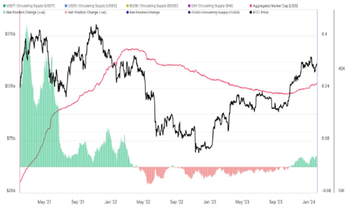 “正如我们上周看到的那样,随着稳定币流入比特币,这使BTC价格超过42,000美元,”他于1月31日对X订阅者表示。