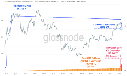 “自转换以来,大约11.56万枚BTC已从GBTC ETF赎回,造成巨大的市场逆风。”