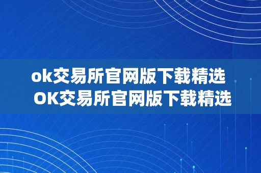 ok交易所官网版下载精选 OK交易所官网版下载精选及OK交易所官网app下载