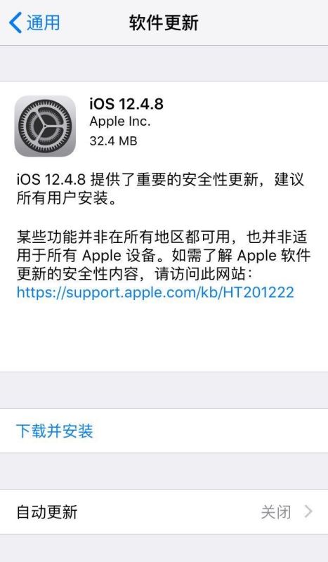 苹果表示,iOS 12.4.8 提供了重要的安全性更新,建议所有用户安装。某些功能并非在所有地区都可用,也并非适用于所有Apple设备。