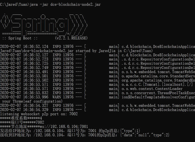 java -jar dce-blockchain-node2.jar