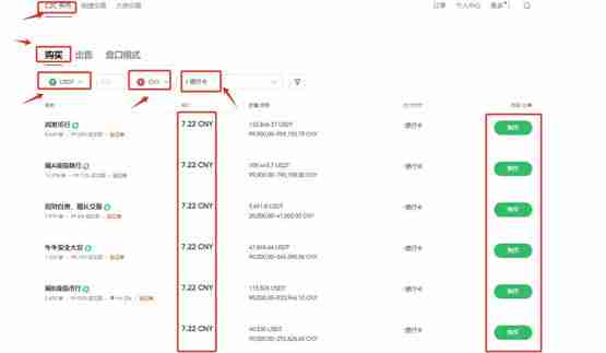 9、进行交易前需要拥有USDT,可在C2C买币进行交易,根据需求选择合适商家,点击“购买”,而后根据提示进行付款、等待商家放币(若是长时间没有收到币种,可联系客服进行处理)