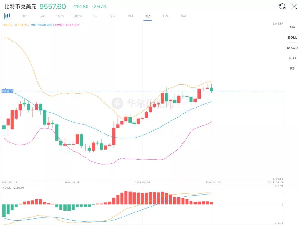 比特币周k线在上布林带的边缘了,macd也准备死叉,预计未来一周都是震荡或震荡向上的行情。