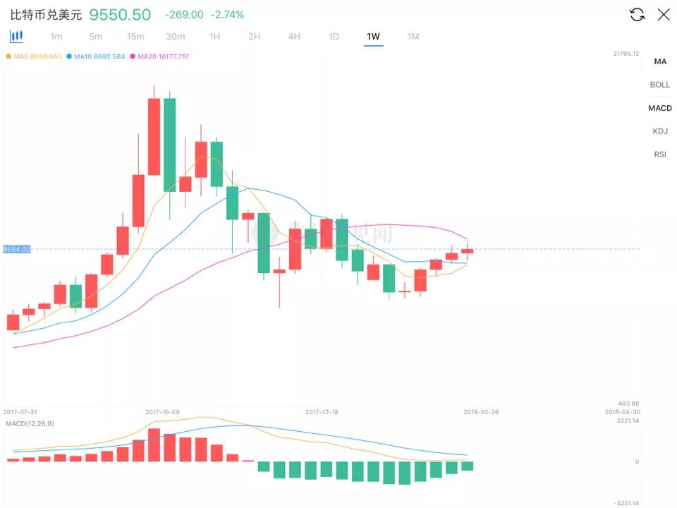 现在最重要的就是等待,等待未来这1-2星期的走势,震荡向上的话牛市基本可以确定了,因为现在比特币周线macd的金叉准备交叉了,如果交叉成功的话就直接等待新高就可以。