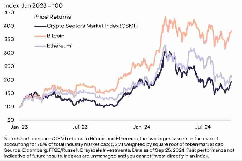 - 根据 FTSE/Grayscale 加密行业指数,加密市场在 2024 年第三季度横盘整理。