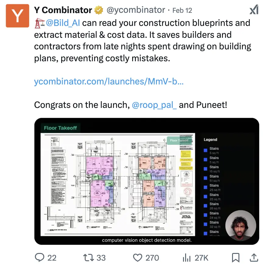 - Bild_AI: 读取建筑蓝图,提取材料和规格数据,并估算成本。