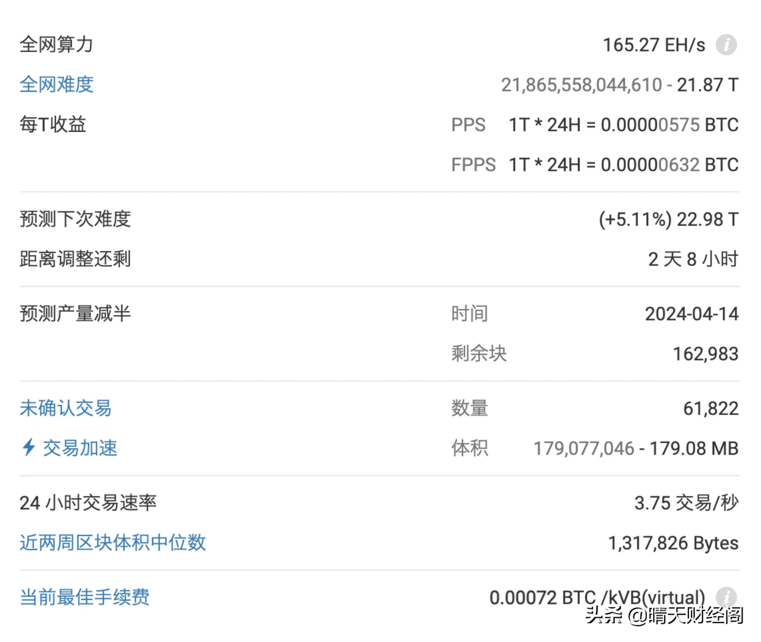 比特币的全球计算难度是21,724,134,900,047,一个家用的2.5GHz的CPU,算力大概是2.24,每T日产出为0.00000579 BTC,咱们算下:
