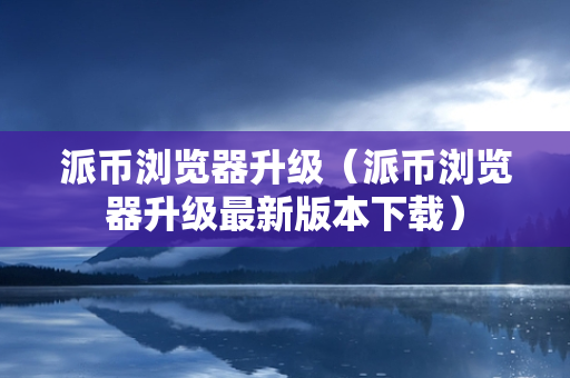 随着区块链技术的不断发展,派币(Pi Network)作为一款基于手机挖矿的加密货币,其用户数量和关注度持续攀升,派币浏览器迎来了一次重大升级,旨在为用户提供更加便捷、高效的服务。