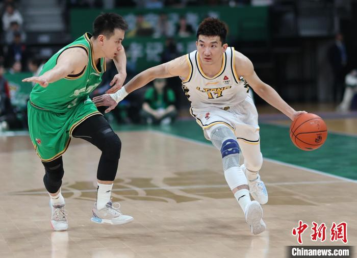 图为浙江东阳光药队球员孙铭徽(右)比赛中带球进攻。中新网记者 于海洋 摄