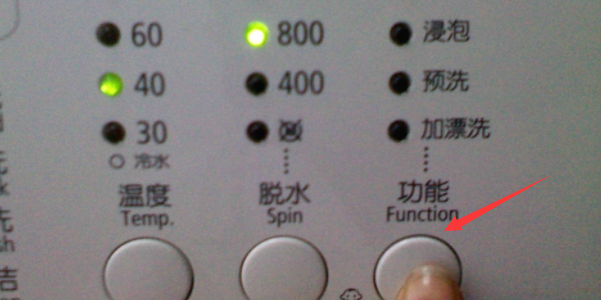 3、功能键。在洗衣机接通电源电源后,未开始工作前,按该键可以设置洗衣机功能,浸泡就是洗衣服前会泡一会后再开咐清游始洗涤,加漂洗指增加漂洗的参数。
